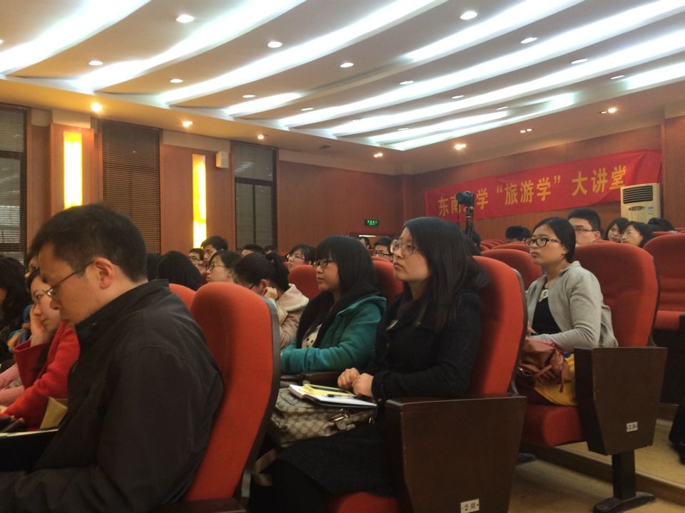 保继刚教授主要从中国滨海旅游发展的阶段划分、阶段特征与发展模式出发,用非常通俗但又不失专业性的语言,详细地阐述了我国大陆地区滨海旅游发展的五个阶段及发展模式,并着重就目前滨海旅游发展、滨海城市发展的核心问题与理论解释进行了深入浅出、热情洋溢的精彩汇报。讲座结束后,东大师生、南师大学生以及宜兴市旅游局官员分别就各自感兴趣的话题,与保继刚教授进行了有益的互动。太阳成集团书记王珏教授专程赶来九龙湖校区与保继刚教授就旅游学科发展、学院人事管理等问题进行了深入的讨论和交流。