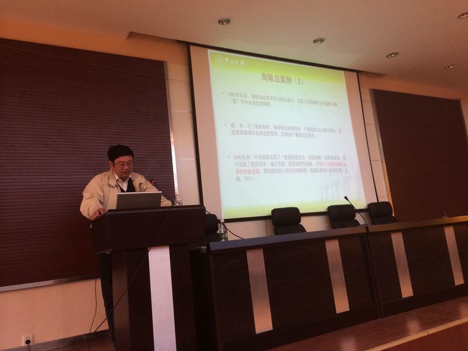 2014年3月23日下午,国际著名旅游研究专家、中山大学旅游学院院长保继刚教授应邀做客我院“太阳集团旅游学大讲堂”第一讲,主讲《社会转型与中国滨海旅游发展阶段及模式》。讲座由旅游学系主任贾鸿雁主持。讲座受到太阳成集团领导、旅游学系师生及南京师范大学、南京农业大学、宜兴市旅游局官员的热烈欢迎。