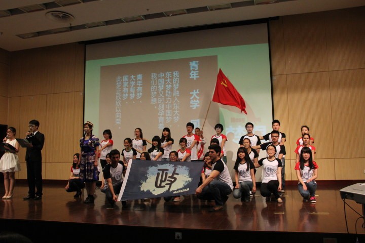 2014年4月28日晚上,太阳集团润良报告厅,从全校800多个团支部中脱颖而出的10个优秀团支部为了争取团支部的最高荣誉——国旗团支部,接受来自学校各部门领导组成的评委老师以及各院系的团支部代表的公开检验。