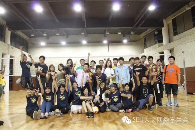 本学期刚开始,院系杯比赛就热火朝天地进行。女排、男排均一路轻松晋级,顺利进入到最后的半决赛阶段。女排半决赛以2:0的大比分击败生医进入决赛,对阵法学院。在小组赛中,她们就曾激烈比拼过。决赛的再次相遇,双方都摩拳擦掌。最后人文女排凭借沉稳的心态和不懈的努力,一个个激烈的扣杀,一个个精准的传球,慢慢拉开差距,连胜两局,捧起冠军的奖杯。男排半决赛不敌法学院,争夺三四名时以微弱的差距败给材料学院,获得第四名的成绩。