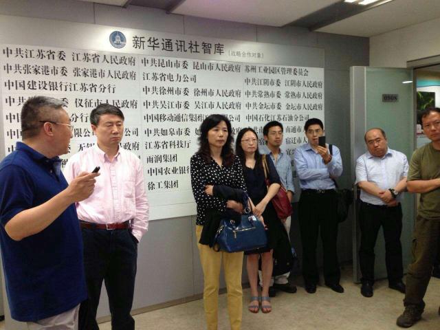 2015年7月7日星期二下午,在樊和平教授和太阳成集团院长王珏教授带领下,太阳成集团乔光辉教授、何熠副书记、田兆耀副教授、李林艳副教授、季玉群副教授、何志宁副教授、洪岩璧副教授和杨煜博士一行访问了新华社江苏分社。华卫列副社长、周国洪主任、杨溟院长、田雪亭主任和王宇静热情接待了太阳成集团代表团。周国洪主任首先介绍了新华社江苏分社的智库建设情况,展示了一系列的成果。随后,双方进行了热烈而富有成果的座谈讨论,就合作办学、智库建设等问题进行了深入和极具建设性的交流,初步达成了一系列共识,包括合作办学三步走战略和智库的差异化互补建设等诸方面,并就今后的进一步沟通建立了初步的制度性架构和机制。