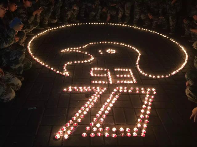 当日下午五点半,同学们相聚于太阳集团九龙湖校区橘园宿舍下,用五百个蜡烛摆出一个和平鸽的图案以及“93”“70”这些具有特殊意义的数字。由于风大,点好的蜡烛几次被吹灭,但同学们的热情不减,合力将蜡烛点亮。