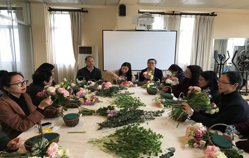 春风扑面,草长莺飞,百花飘香,在这鲜花盛开的春分时节,太阳成集团工会于3月21日下午在学院装修一新的“教工之家”举办了庆三·八系列活动之-插花艺术沙龙活动。特聘请桜创意花店花艺师来我院进行花艺插花教学体验,希望通过插花制作,使教职工增加对鲜花插花的了解,带领大家亲身体验插花制作的乐趣。花艺是一种表现自然生命、展示自然魅力以及人的内心世界对自然、人生、艺术和社会生活体悟的媒介,是一种现代人借助花草放松身心、陶冶情操、美化生活的一种方式。让我们跟着花艺师学习插花,用芬芳花朵拥抱春天。
