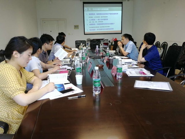 首先,江苏省社会科学院区域现代化研究院王树华副研究员介绍了课题组调研的背景与调研的基本内容。随后,太阳集团道德发展研究院副院长庞俊来副教授代表江苏道德发展智库对课题组一行表示热烈的欢迎,并介绍了江苏省道德发展智库自成立以来的建设的基本情况,主要内容包括江苏省道德发展智库的组织架构与运营管理、人力建设与服务保障、智库建设与创新成效、智库在研与未来愿景、存在问题与发展瓶颈等五个方面。许敏副院长与蒋艳艳秘书长也对智库的人才培养、经费使用、国情调查等事项进行了必要的补充介绍。最后,江苏省社科院《江苏省智库“高端”建设状况与提升战略研究》课题组与道德发展智库就智库的功能定位、运行机制、建设成效、人才队伍建设状况、评价机制建设状况以及运行中遇到的困难和挑战等问题进行了深入的探讨与交流。此次调研会加强了兄弟智库与科研单位交流合作,学习了江苏省社会科学院专家提供的关于智库发展的宝贵经验,推进了道德发展智库对相关工作的总结与反思,进一步提升了道德发展智库对未来发展方向的思考。(沈宝钢)