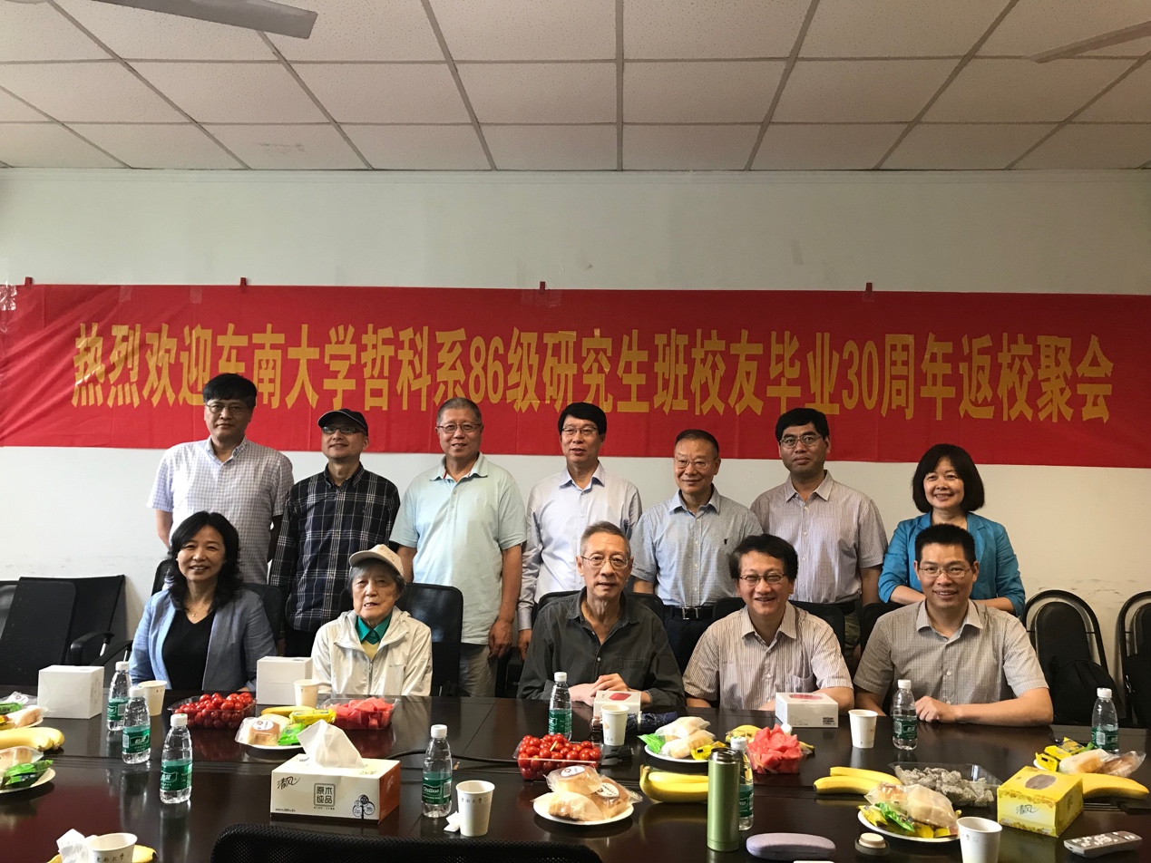 2019年6月21日上午,哲学与科学系86级研究生毕业30周年聚会在四牌楼校区五四楼太阳成集团会议室隆重举行。校友们从香港、北京、哈尔滨、厦门等地返校与会,太阳成集团王珏院长、王兵教授、夏保华教授,老教师代表徐凤女士、吕乃基教授等亲临现场致辞欢迎。会议由南京晓庄学院原党委书记王国聘教授(时任哲科系86级研究生班长)主持。