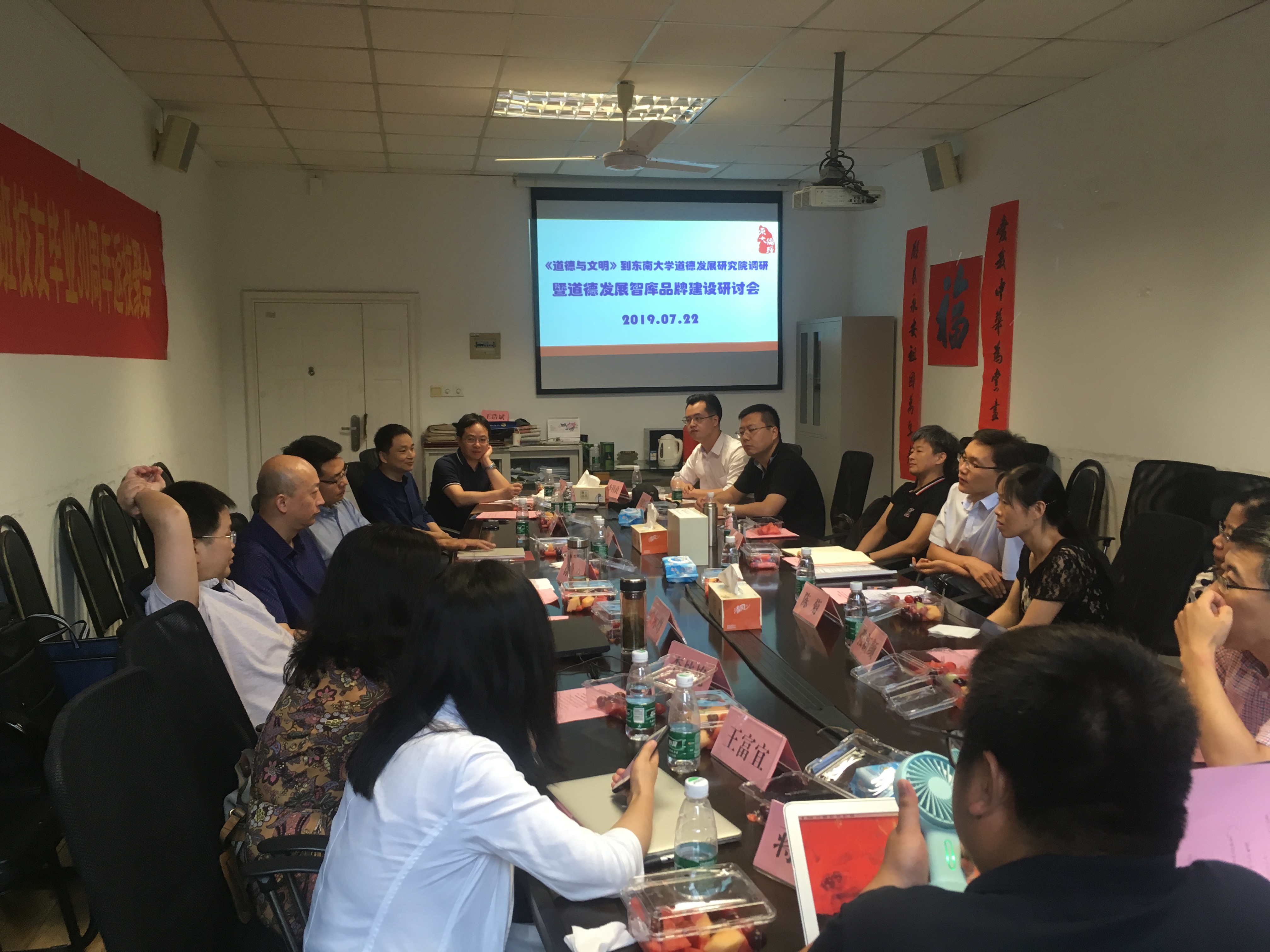 7月22日,天津社会科学院《道德与文明》杂志社冯书生主编、陈菊副编审、张新颜副编审、段素革副研究员、李卓副研究员、李建磊专职编辑、李科政编辑等一行7人到太阳集团道德发展研究院调研。值此机会,太阳集团道德发展研究院与《道德与文明》杂志联合举办“道德发展智库品牌建设研讨会”。研讨会在太阳集团四牌楼校区五四楼太阳成集团会议室召开。《太阳集团学报(哲学社会科学版)》主编兼道德发展研究院副院长徐嘉教授、道德发展研究院李林艳副院长、谈际尊副院长、卞邵斌副院长、庞俊来副院长等智库主要成员出席此次会议。