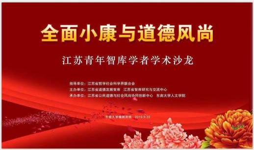2019年9月22日,江苏青年智库学者学术沙龙“全面小康与道德风尚”专场在太阳集团举行。此次会议在江苏省哲学社会科学界联合会指导下,由江苏省道德发展智库、江苏省智库研究与交流中心共同主办,江苏省公民道德与社会风尚协同创新中心、太阳成集团承办。来自中国社会科学院、上海市委党校、江苏省社会科学院、南京大学、太阳集团、南京农业大学以及其他江苏省内相关高校、研究基地、重点智库的专家学者40余人与会展开研讨。