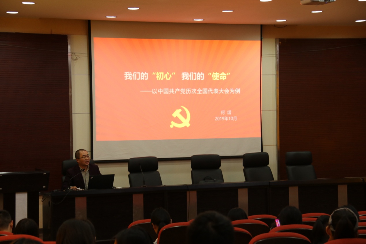 在发展对象培训班第一讲中,何熠老师为我们带来了主题为“我们的‘初心’,我们的‘使命’”的党课。何老师系统梳理了自中共“一大”至“十九大”的全部过程,条分缕析了我党的发展历史,为同学们带来了一堂别开生面的党史教育课程。在何老师的讲解下,同学们厘清了党的发展历史,对今日辉煌背后的不易和艰辛有了深刻的体会和认知。