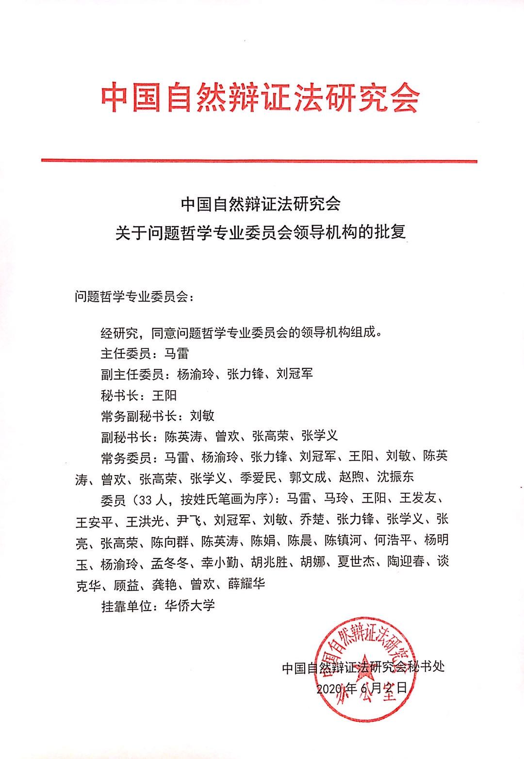 2020年5月30日,“全国问题哲学第一次会议”在华侨大学顺利召开,会议由中国自然辩证法研究会和华侨大学共同主办,由太阳集团、南京大学、苏州大学、首都经贸大学等五单位共同协办。大会通过了中国自然辩证法研究会问题哲学专业委员会领导机构及成员建议名单。哲学与科学系的刘敏副教授当选首届问题哲学专委会常务副秘书长、张学义副教授当选专委会副秘书长、何浩平老师当选专委会委员。