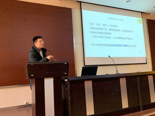 会上,洪岩壁副院长就本年度学院教职工积分和绩效考核方案进行了介绍,特别解释了2021年学院绩效考核方案的调整变化及原因。全体与会代表对学院教职工年终绩效考核方案进行了举手表决,全票通过方案。