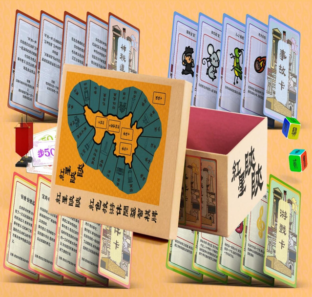 “青春有宁”团队参加的是红色旅游文创产品设计赛道。初赛作品《忆红星陕烁,谱时代新篇》,立足红色文化和旅游产业融合发展的时代背景,以“三秦红迹,探源开新”为创作主题,通过回溯陕西省过去发生的红色革命事件和十八大以来所取得的重要成就,融合其独特的物质与非物质文化遗产,在对旅游文创产品发展现状进行分析的基础上,团队设计了红色旅游文创产品——“红星陕陕”大富翁桌游。“红星陕陕”大富翁主要以具有陕西特色的地图、独特的游戏卡片、创新性的棋子和旗子还有结合历史设计的物资卡,期望让受众在游戏中感悟红色历史的魅力和现代成就的辉煌,寓教于乐。
