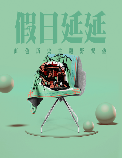 决赛作品《续圣地薪火,享假日延延》,以延安为创作对象,选择新冠肺炎疫情影响下兴起的微旅游为切入点,设计了“假日延延”野餐系列三件套的文创产品,分别是收纳箱、野餐垫和餐盒。产品以“寻根圣地,赓续薪火”为创作主题,通过梳理和提炼延安丰富的红色文化资源、非物质文化遗产以及十八大以来所取得的重要成就,使产品集文化性、趣味性和功能性为一体。其中,收纳箱以延安纪念馆为灵感主体,加上特色的延安剪纸元素。餐盒以南泥湾战士自制餐盒为原型并画有延安木刻风格的绘画。野餐垫四周有着从抗战时期到新时代的重要历史事件,而中间则是以木刻风格融合众多延安著名元素插画。本系列文创产品,希望参与者在假日游玩当中感悟红色历史和现代成就,寓教于游。