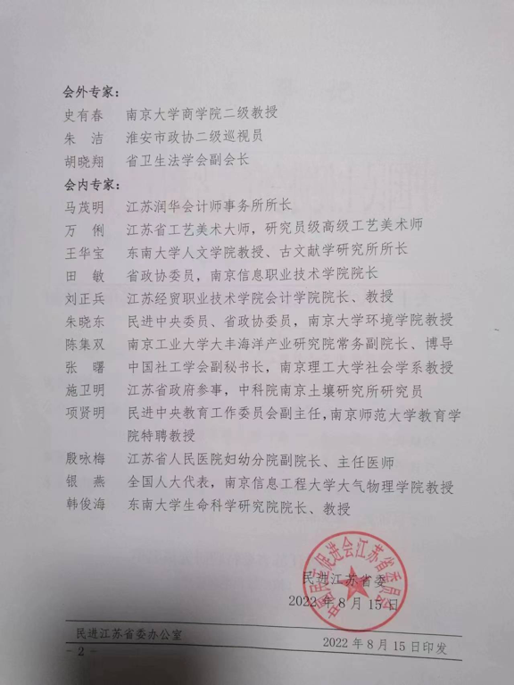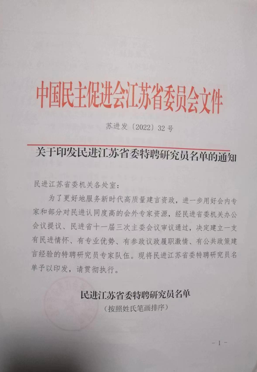 为了更好地服务新时代高质量建言资政,进一步用好专家资源,民进江苏省委建立了一支有民进情怀、有专业优势、有参政议政履职激情、有公共政策建言经验的特聘研究员专家队伍,由3名会外专家、13名会内专家组成。民进会员、太阳成集团王华宝教授入选。