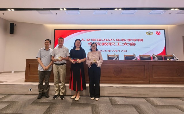 首先,高珺介绍了2025年以来学院新入职的教职工,并代表学院对他们表示热烈欢迎。洪岩璧院长向从教满10年、20年的教师颁发纪念牌。